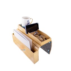 Bandeja antideslizante de bambú para Reposabrazos de sofá, mesa, portavasos, organizador de bandeja de brazo con bolsillo de almacenamiento lateral