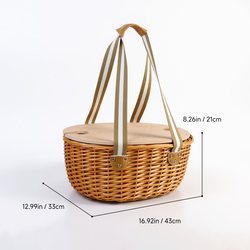 Плетеная корзина для пикника 2PP с деревянным столиком и местом для хранения для мероприятий на открытом воздухе